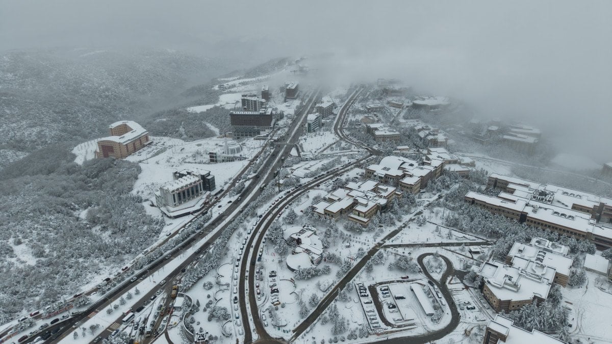 - Kentteki kar manzaraları drone ile kaydedildi.