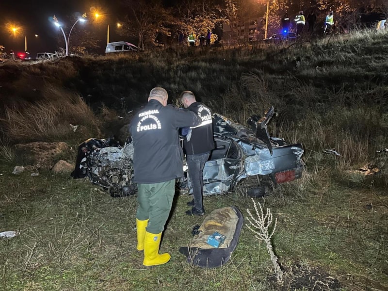 Uşak'ta otomobilin refüje çarpıp yan yola savrularak şarampole devrilmesi sonucu 2 kişi hayatını kaybetti, 1 kişi yaralandı.