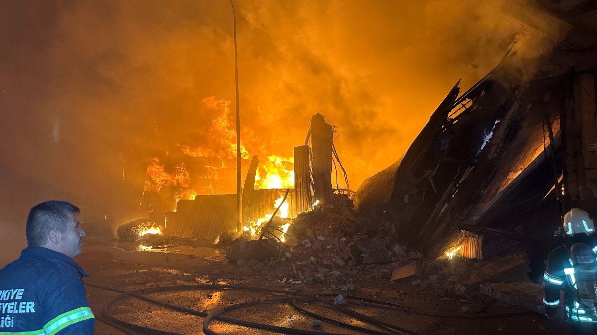 - Polis, çevrede güvenlik önlemleri alırken itfaiye ekipleri yangını söndürmeye çalışıyor.