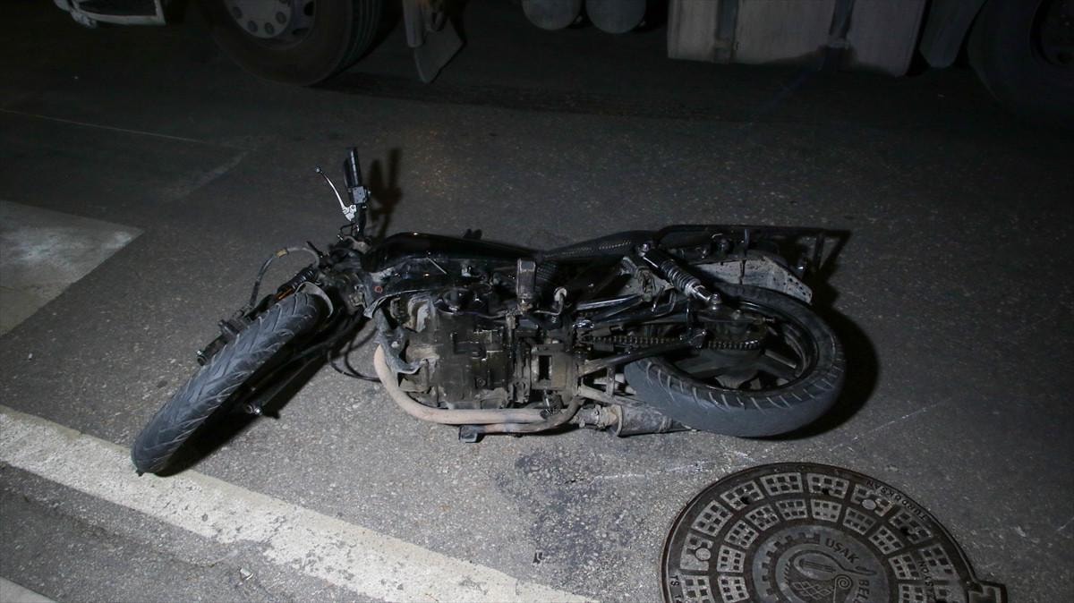 Uşak'ta Cumhuriyet Mahallesi Orhan Dengiz Bulvarı'nda ilerleyen E.A. yönetimindeki 33 ATC 853 plakalı tır, Kazım Karabekir Caddesi'ne dönüş yaptığı sırada sürücüsünün ismi henüz belirlenemeyen 35 AY 5330 plakalı motosikletle çarpıştı.