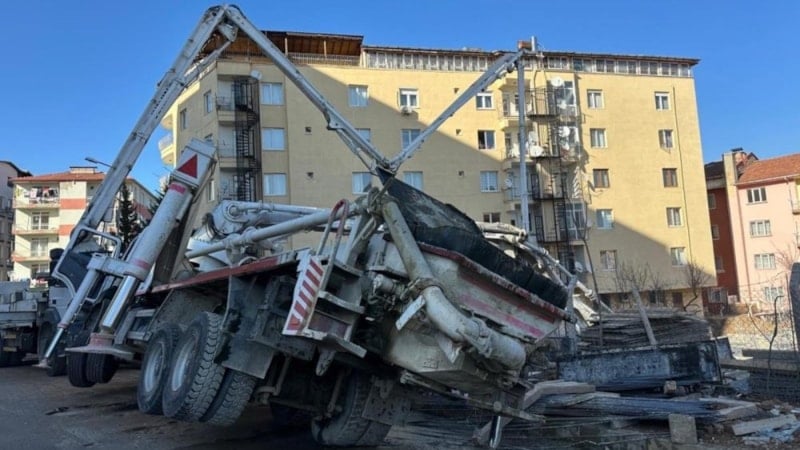 Uşak'ta inşaatta beton dökme çalışmaları sırasında beton pompasının denge ayaklarının kırılması sonucu beton pompası yan yattı. Pompanın kolunun altında kalan işçi yaşamını yitirdi.