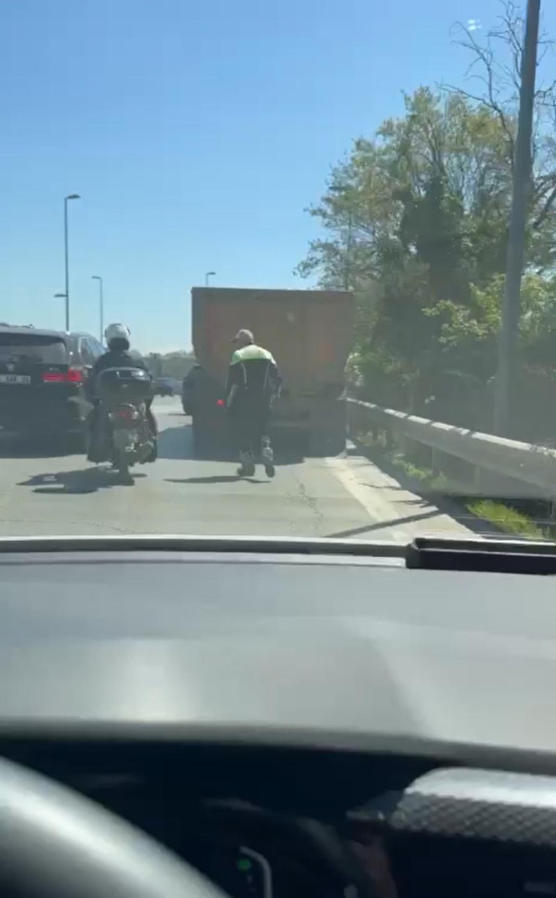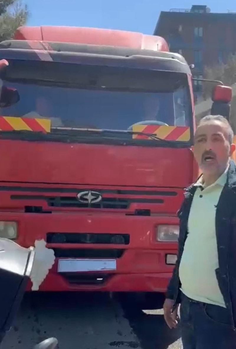 Kamyon şoförü ise muhatara "Polisi aradınız mı?" diyerek tepki gösterdi.