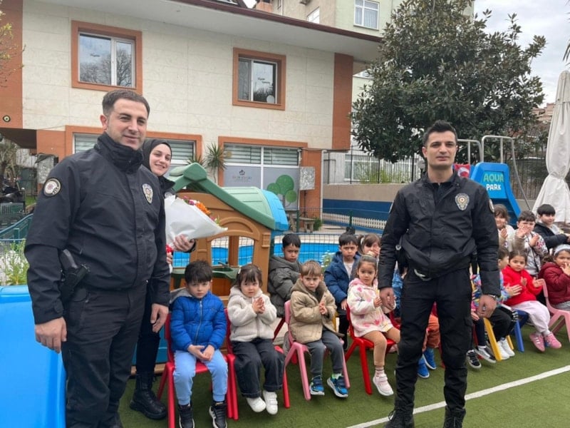 İstanbul Üsküdar’da anaokulu öğrencileri, Polis Haftası kapsamında ekipler için sıra dışı bir sürpriz hazırladı. Yapılan sahte ihbar üzerine okula gelen polisler, alkışlar ve pastayla karşılandı.