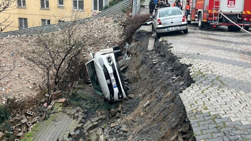 Çöken yolda park halindeki bir diğer araç ise ekipler tarafından halatla sabitlenerek olası bir düşme tehlikesine karşı güvence altına alındı. Polis ekipleri sokak giriş ve çıkışlarını kapatarak çevrede güvenlik önlemleri aldı.