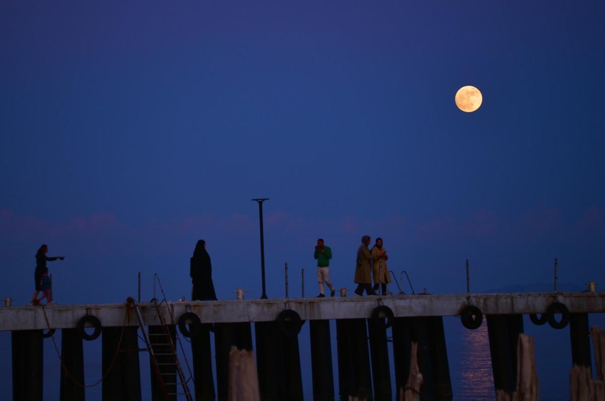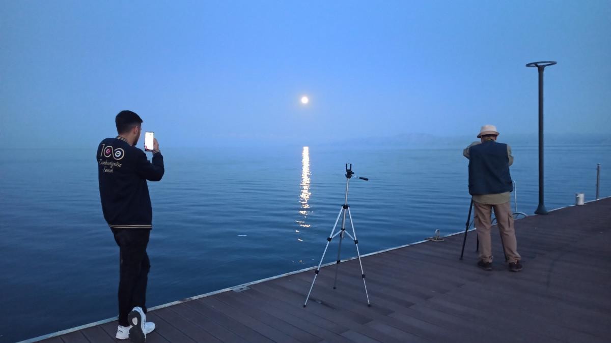 Bazı vatandaşlar ise Ahlat iskelesine inerek ayın su üzerindeki yansımasını yakından izledi ve manzaranın fon oluşturduğu karelerde hatıra fotoğrafları çektirdi.