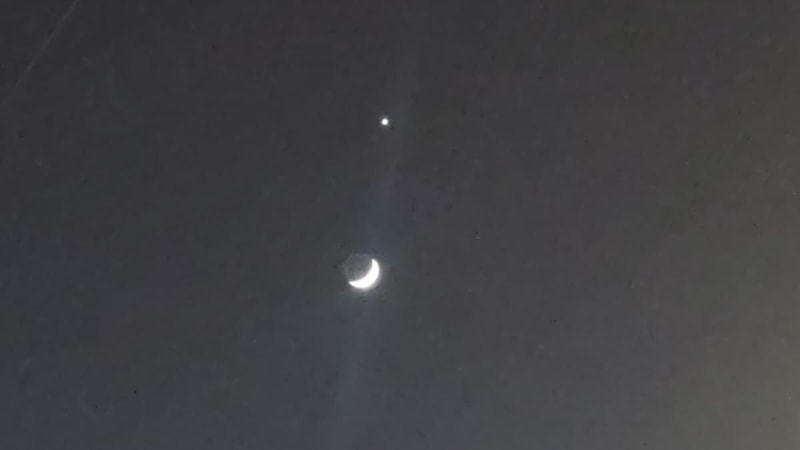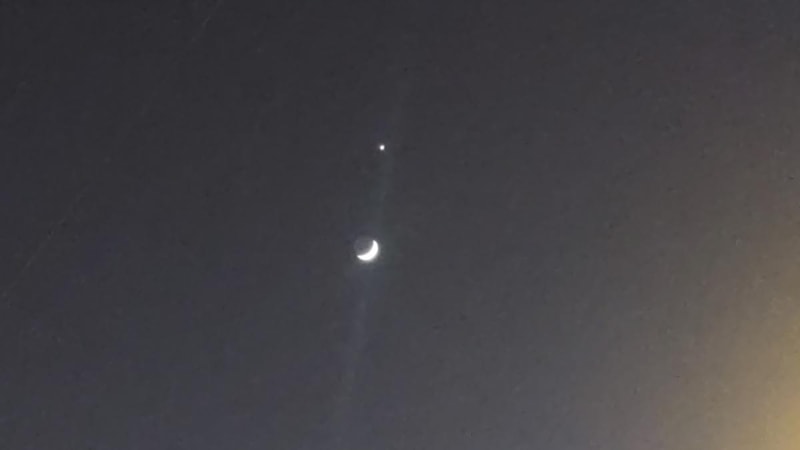 Hilal biçimi alan aya çok yaklaşan Venüs gezegenin Türk bayrağındaki formuna kavuşması, objektiflere yansıdı.