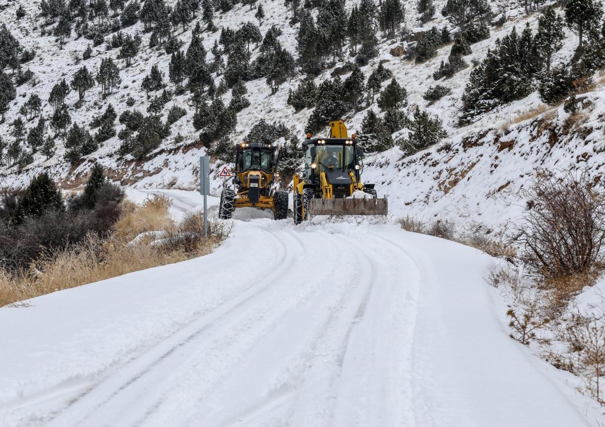 Yolların açılması için Büyükşehir Belediyesi Karla Mücadele ekipleri çalışma başlattı.