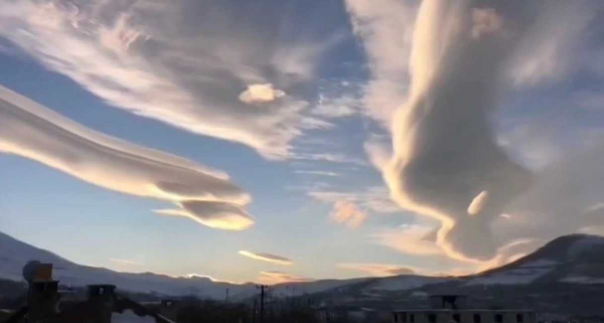 Van'ın Gürpınar, Edremit ve Gevaş ilçelerinden görülen ve yaklaşık 45 dakika bozulmadan kalan mercek bulutu görenlerin ilgisini çekerken, eline cep telefonunu alan vatandaşlar bu anları kaydetti.