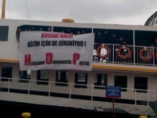 Dün sabah saat 10.45'te Beşiktaş'tan Kadıköy'e hareket eden vapura binen 10 kişi, Kobani Halkı Bizim İçin de Direniyor pankartı açmıştı. Sloganlar atan grubun bulunduğu vapur Kadıköy İskelesi'ne yanaşmış, yolcular vapurdan indikten sonra da eylemci grup slogan atmaya devam etmişti. Bu sırada Beşiktaş'a gitmek için iskelede bekleyen yolcular, eylemcilere tepki göstermişti.