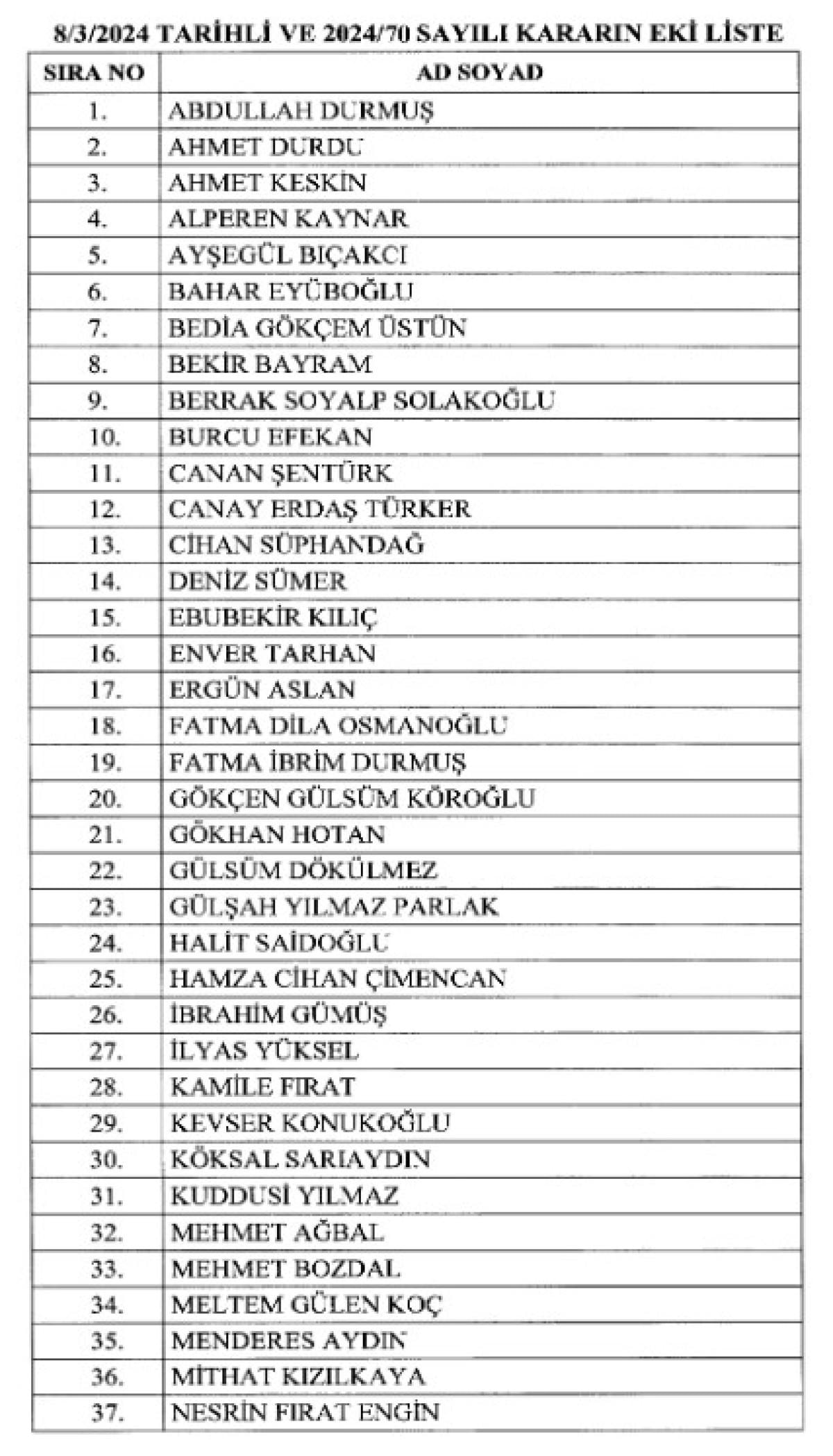 Hazine ve Maliye Bakanlığında açık olan vergi başmüfettişliklerine, Cumhurbaşkanı kararı ile atanan isimlerin listesi ise şu şekilde:
