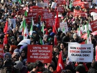 8 Mart Dünya Kadınlar Günü’nde Suriyeli tutsak kadın ve çocukların özgürlüğü için on bini aşkın “vicdanlı yürek” Sultanahmet Meydanı’nda bir araya geldi.