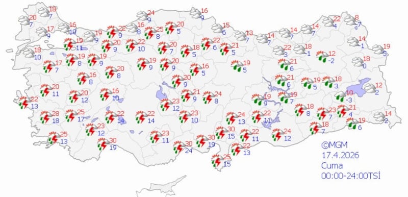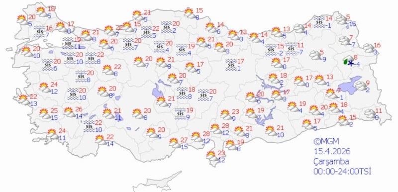 Meteoroloji Genel Müdürlüğü'nün (MGM) son verilerine göre, Türkiye genelinde parçalı ve çok bulutlu bir hava hakim olacak.
