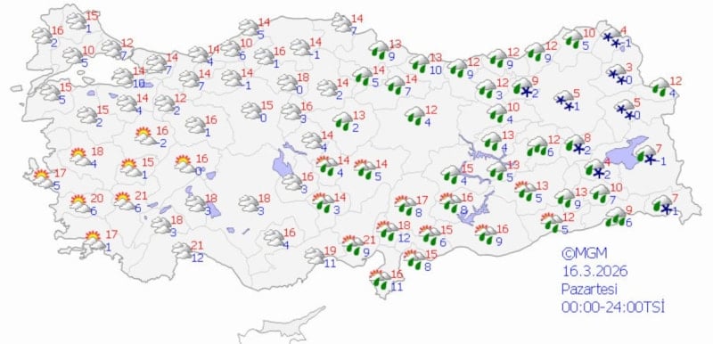 Meteoroloji Genel Müdürlüğü'nün (MGM) son verilerine göre, Türkiye genelinde hava sıcaklıkları batı ve iç kesimlerde mevsim normalleri civarında seyrederken, doğu bölgelerde yer yer normallerin altında kalmaya devam ediyor.