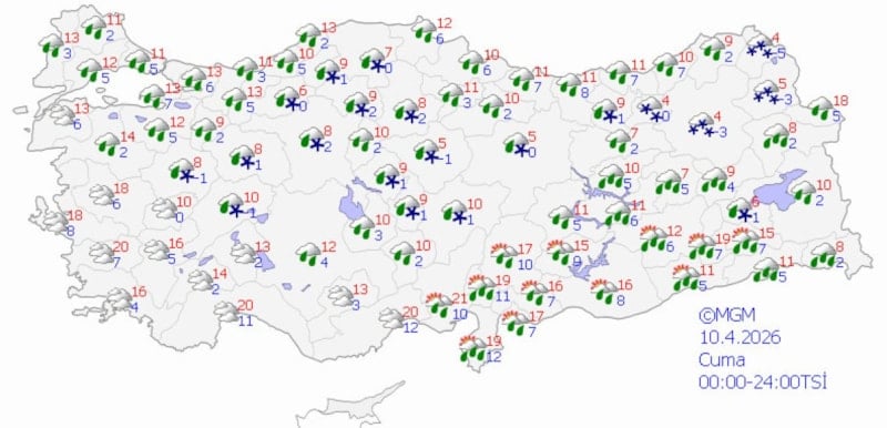 Yağışlar genellikle yağmur şeklinde, iç ve doğu kesimlerin yükseklerinde karla karışık yağmur ve kar olarak görülecek.