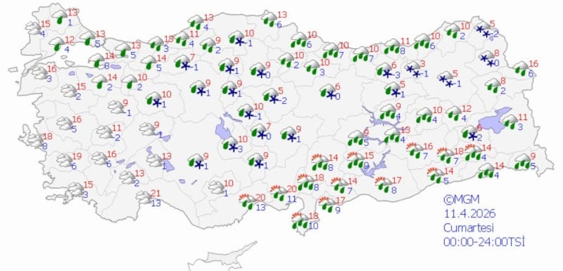 Özellikle kuzeydoğu ve doğuda karla karışık yağmur ve kar yağışının devam edeceği tahmin ediliyor.