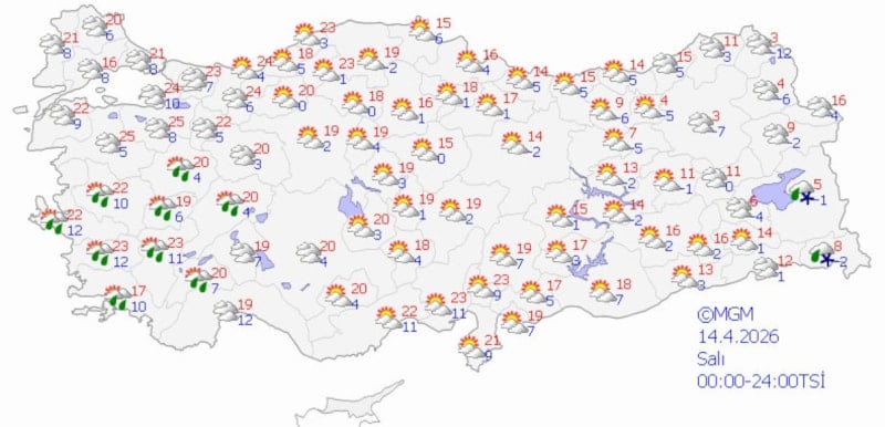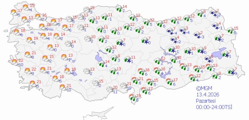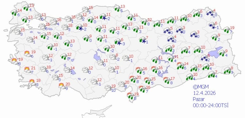 Sıcaklıkların önceki güne benzer seyirde; batı bölgelerde 12-20 derece, doğuda 5-15 derece aralığında olacağı değerlendiriliyor.