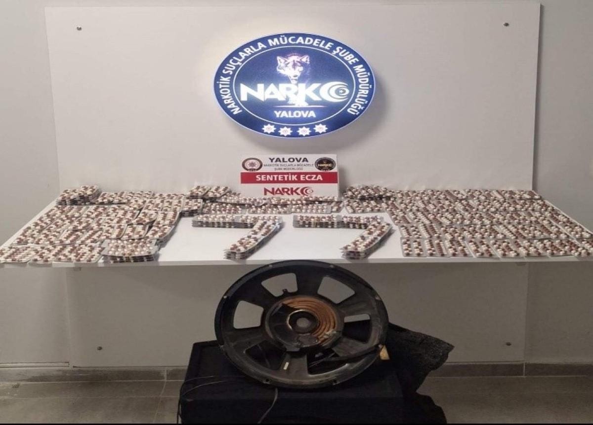 2'si kadın 4 şüpheli gözaltına alınırken, araçta narkotik köpeği 'Gölge' eşliğinde yapılan aramalarda, araç ses sistemleri içerisine özel olarak gizlenmiş vaziyette 2 bin 688 adet sentetik ecza grubu hap ile 1,93 gram sentetik kannabinoid maddesi ele geçirildi.