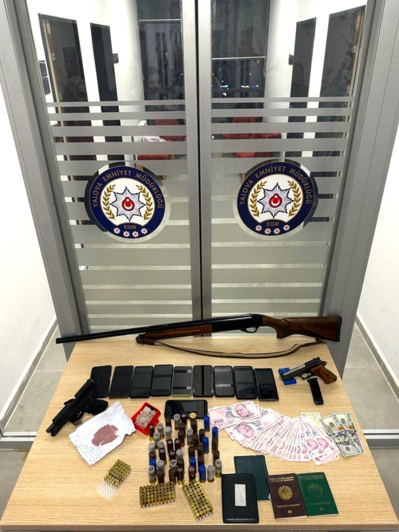 Şüphelilerin adreslerinde yapılan aramalarda 2 ruhsatsız tabanca, 135 mermi, 1 ruhsatsız av tüfeği ve 43 av tüfeği fişeği ile bir miktar sentetik uyuşturucu ve nakit ele geçirdi.