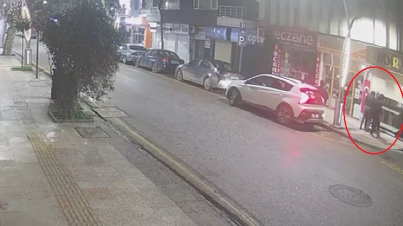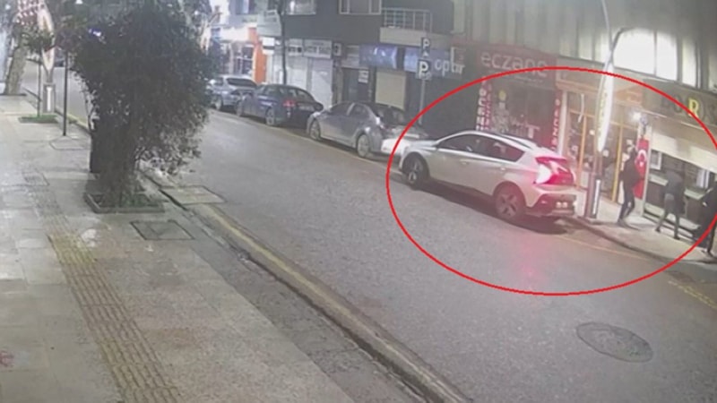 Hırsızlık anı çevredeki iş yerinin güvenlik kamerasınca görüntülendi.