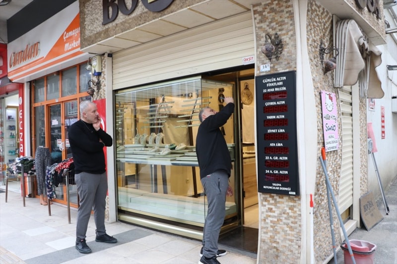 Gelince kepenklerin açık, kapının camının ise kırılmış olduğunu gördük. Şu anda hasar tespiti yapmadık. Ne kadar altın aldıkları belli değil. Bizim düşündüğümüz, herhalde kumandamızın kopyası yapılmış. Normalde bizim sabah gelip dükkanı açtığımız gibi gelip kumandayla dükkanı açıyorlar. Kapının camını kırıp, içeri girip kasayı açmıyorlar, tezgahın üzerindeki altınları alıyorlar. Adet olarak söyleyemem ama kabaca 1-1,5 kilogram altını alıyorlar. Dükkana giren 4 kişi, araçta da 2 kişi olmak üzere toplam 6 kişilermiş.