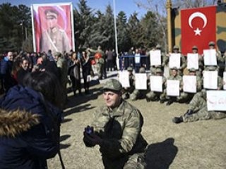 Yaklaşık 15 bin kişinin katılımıyla gerçekleştirilen törenin ardından eğitimini tamamlayarak yemin eden erlerden Samsunlu Mücahit Yılmaz, kız arkadaşına evlenme teklifi etti.