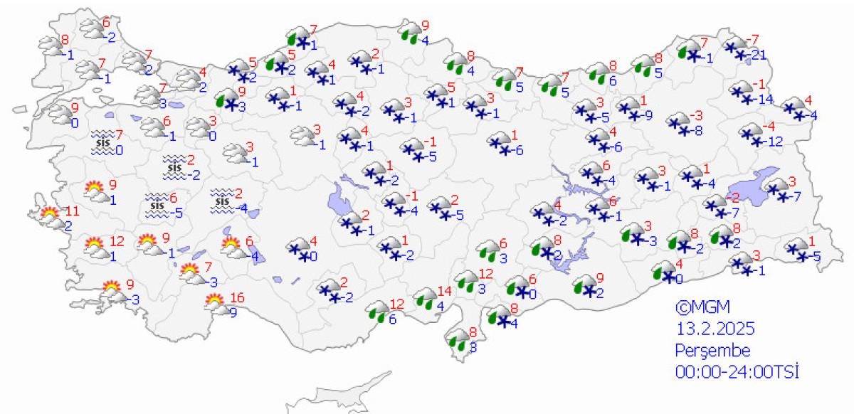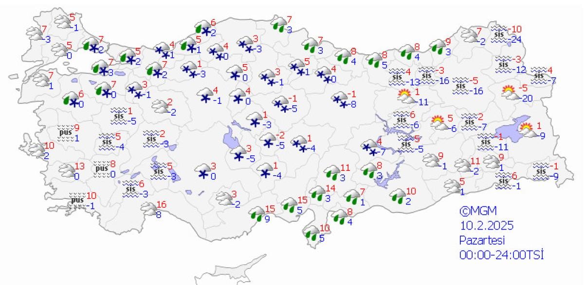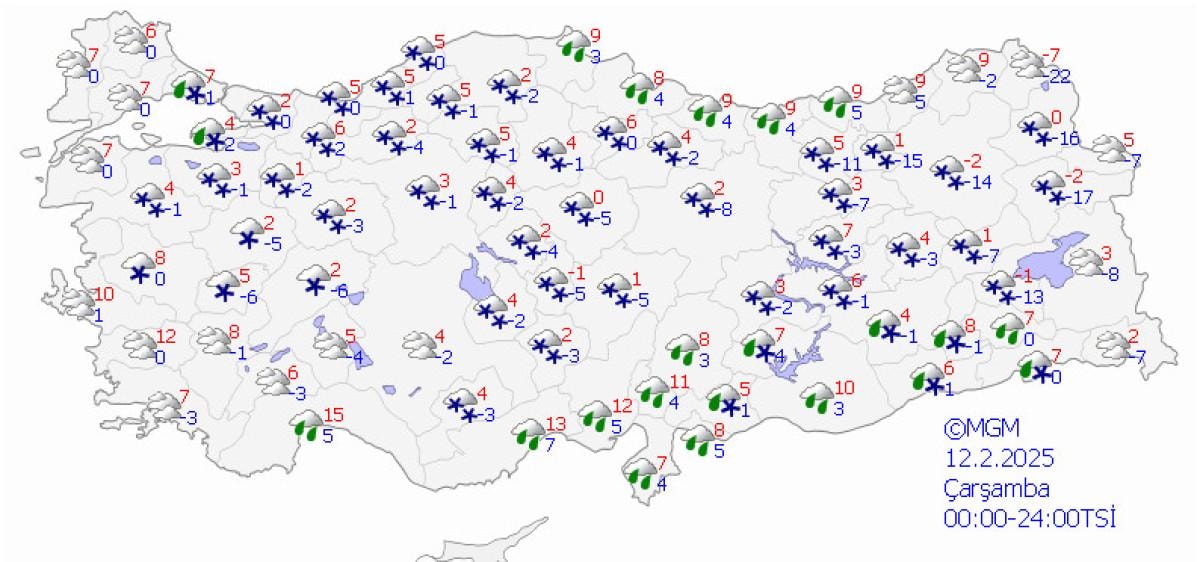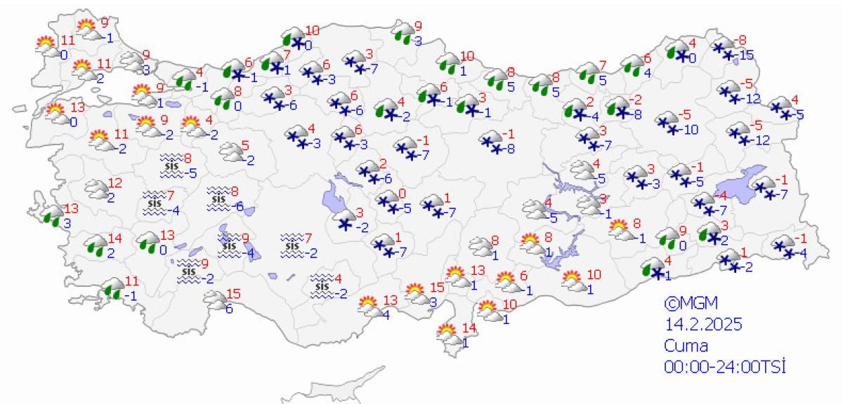 Yapılan son meteorolojik değerlendirmelere göre, 4 Şubat 2025 Salı gününden itibaren hava sıcaklıklarının kuzey ve batı kesimlerde, 5 Şubat 2025 Çarşamba gününden itibaren de iç ve doğu kesimlerde hissedilir derecede (6 ila 12 derece) azalarak ülkemiz genelinde mevsim normallerinin altına ineceği tahmin ediliyor.