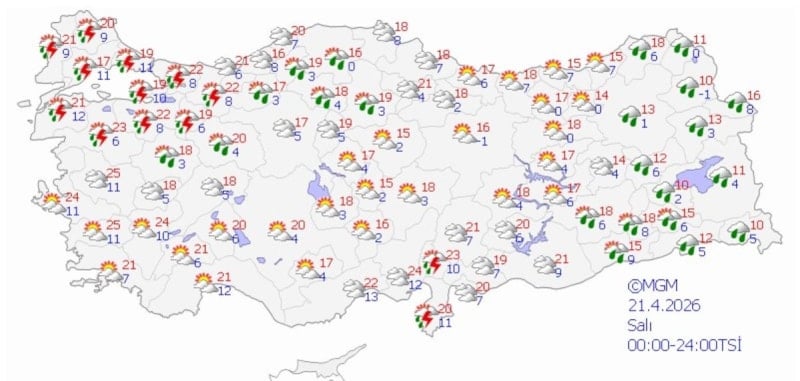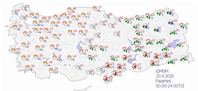 Özdemirci, salı günü Doğu Karadeniz'in doğusu, Doğu Anadolu'nun doğusu ile Güneydoğu Anadolu'da Diyarbakır, Mardin ve Batman çevrelerinde yağış görüleceğini anlatarak, aynı gün kuzeybatı kesimlerden yeni bir yağışlı sistemin yurda giriş yapacağını, Marmara genelinde, Batı Karadeniz'in iç kesimlerinde, Eskişehir, Çankırı ve Kütahya çevrelerinde etkili olacağını belirtti.