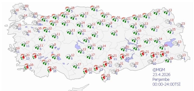 İzmir'de ise pazartesi ve salı parçalı bulutlu havanın etkili olacağını belirten Özdemirci, çarşamba günü ise gök gürültülü sağanak görüleceğini, kentte en yüksek sıcaklığının hafta boyunca 22 ila 24 derece arasında olmasının beklendiğini kaydetti.