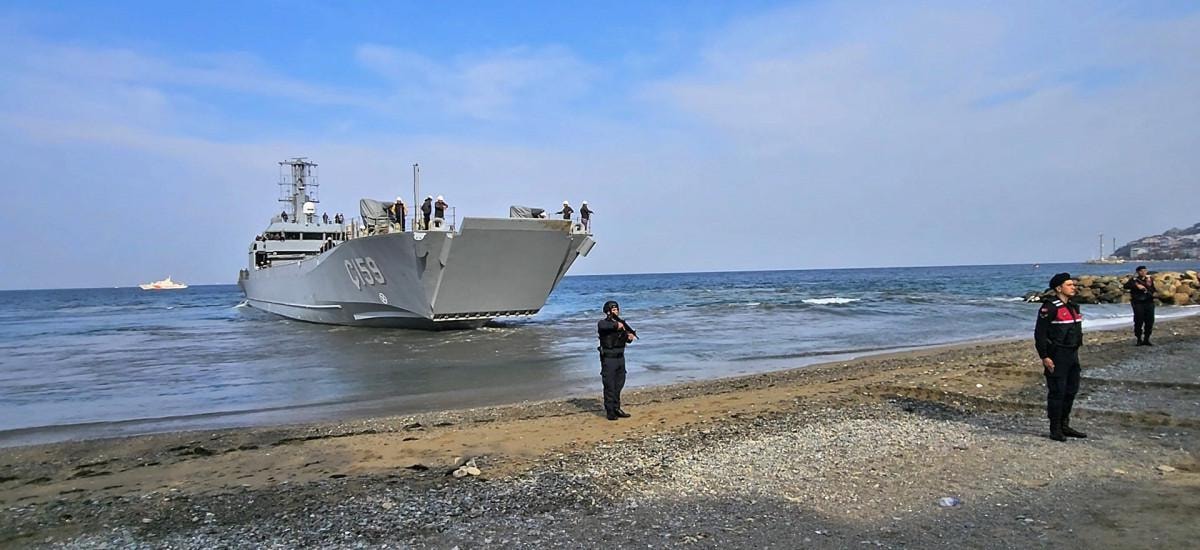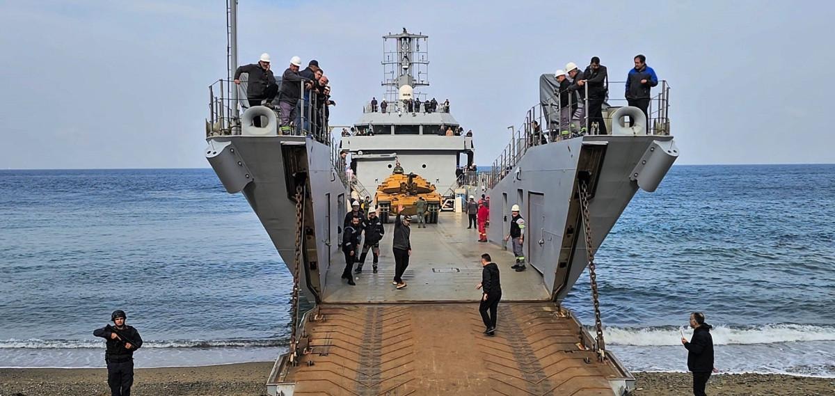Sahil Caddesi kıyısına yanaşan gemi, ön rampasını indirerek bir tankın karaya çıkmasını sağladı. Ardından tank geri manevra yaparak yeniden gemiye yüklendi.