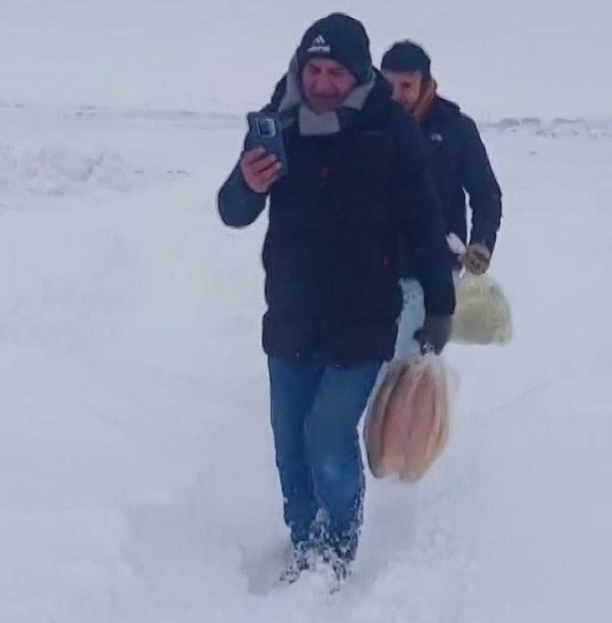Zaman zaman diz boyunu aşan kar içinde ilerleyen vatandaşlar, sert rüzgâr ve tipi nedeniyle güçlükle yol aldı. Zorlu şartlara rağmen ilçe merkezine ulaşan köylüler, alışverişlerini yaptıktan sonra ekmek poşetleriyle aynı zorlu güzergâhı tekrar yürüyerek köylerine döndü.