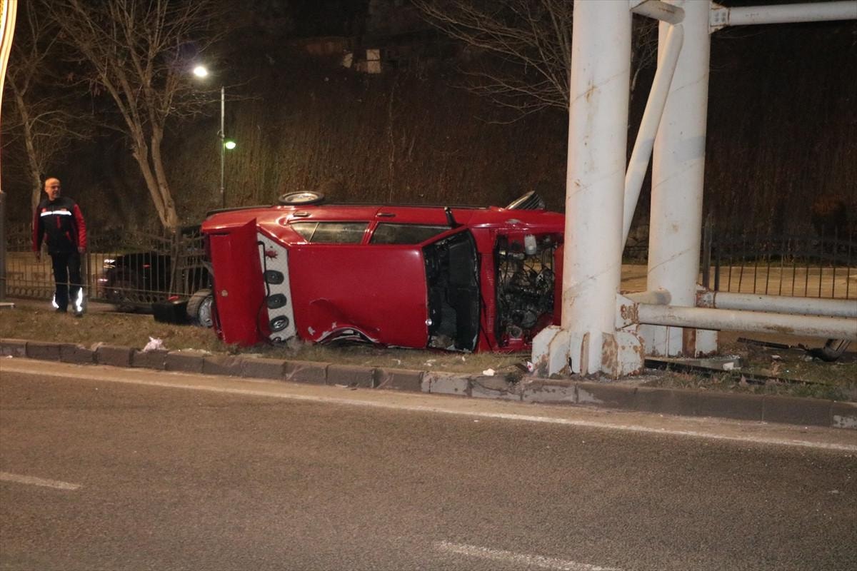 Yozgat'ta Ankara Caddesi'nde O.İ. idaresindeki 19 EK 825 plakalı otomobil, sürücüsünün direksiyon hakimiyetini kaybetmesiyle Şehit Mehmet Turan üst geçidinin ayağına çarptı.
