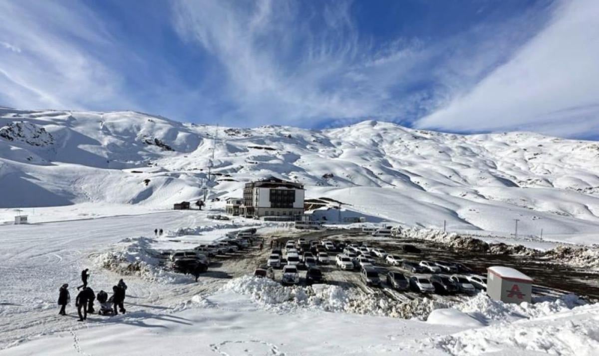 Yüksekova ilçesinden Mergabütan Kayak Merkezi'ne giden 25 kişilik kayaksever, yüksek oksijenli dağ havasında snowboard, kayak ve kızaklarla doyasıya kaydı.