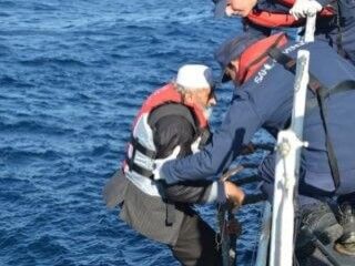 Operasyonda durdurulan harekat halindeki iki ayrı lastik bot içinde 41'i çocuk, 14'ü kadın ve 16'sı erkek olmak üzere Afganistan uyruklu 71 kaçak göçmen yakalandı. İçlerindeki yaşlı mülteci, sahil güvenlik botuna bindirilirken zorluk çekti.