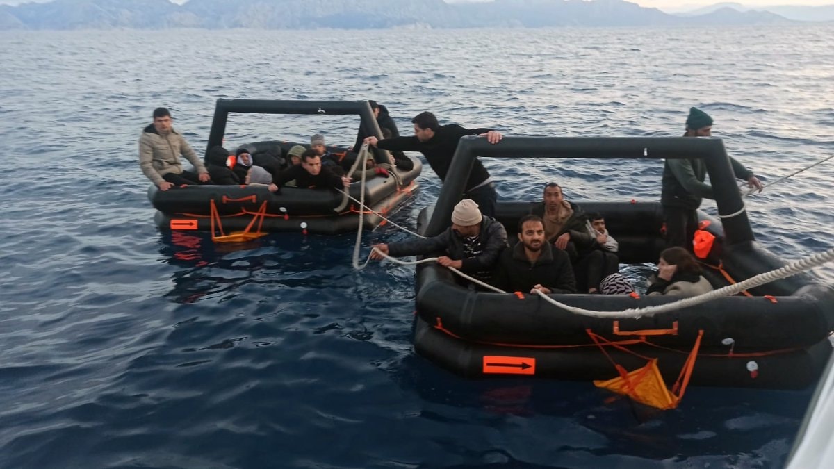 Muğla Sahil Güvenlik ekipleri, Marmaris ilçesi açıklarında can salları içerisinde bir grup düzensiz göçmen olduğunu tespit etti.