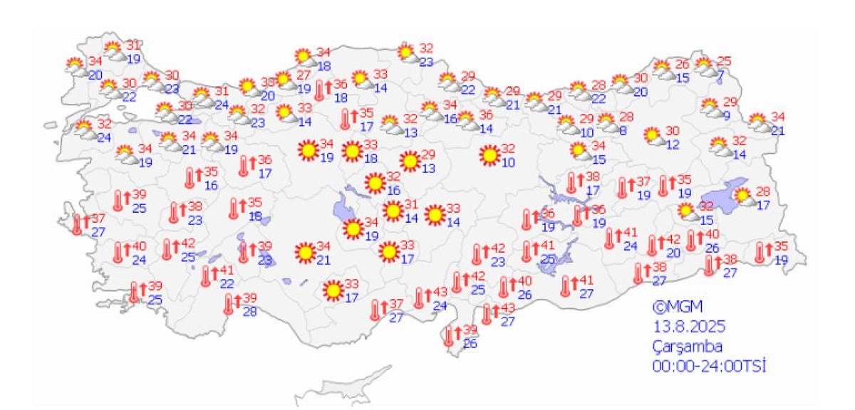 Çelik, sıcaklıkların Ankara’da 34-35, İstanbul’da 30-31 ve İzmir’de ise 36-38 derece civarında seyredeceğini bildirdi.