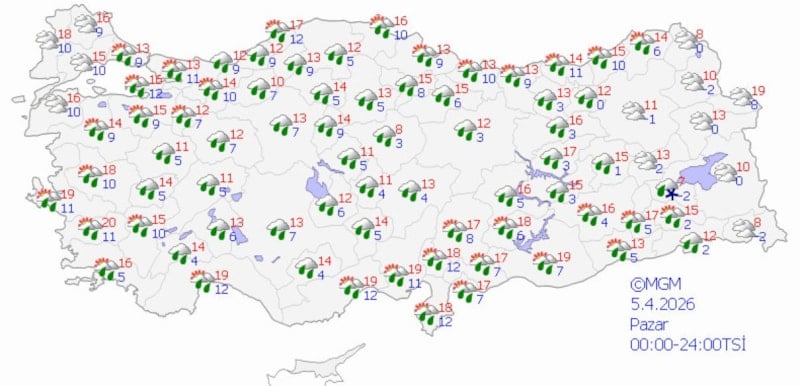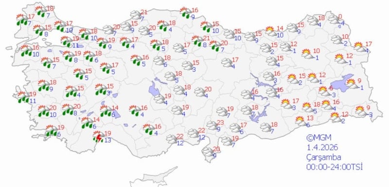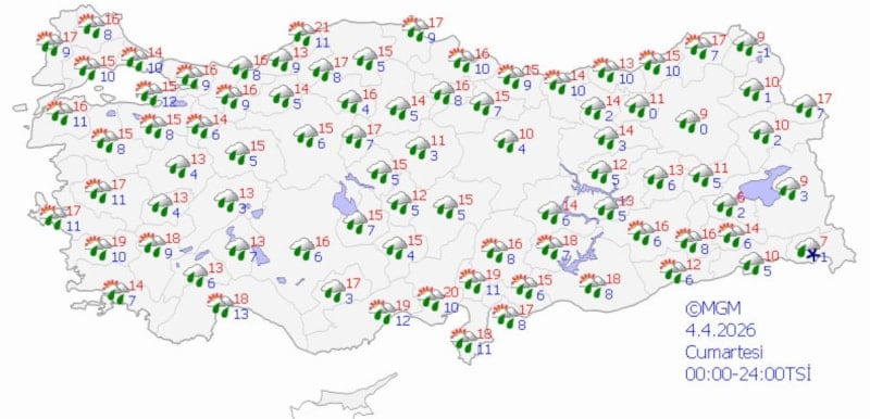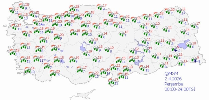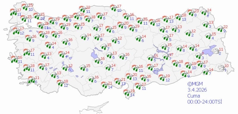 Türkiye genelinde, Meteoroloji Genel Müdürlüğü'nün (MGM) son verilerine göre ülke büyük ölçüde parçalı ve çok bulutlu bir hava bekliyor.