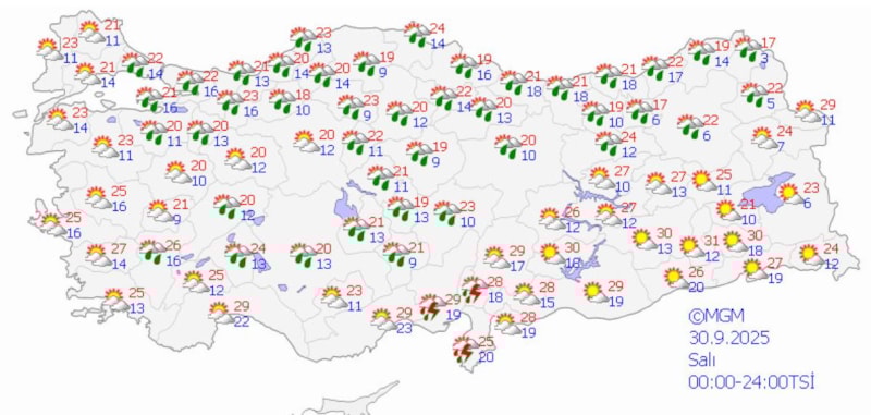 Çevre, Şehircilik ve İklim Değişikliği Bakanlığı Meteoroloji Genel Müdürlüğü Hava Tahmin Uzmanı Cengiz Çelik, sonbaharın etkisini göstermeye başladığını ve yağışlarla iç kesimlerdeki sıcakların 18 ila 20 derecelere kadar düştüğünü söyledi.