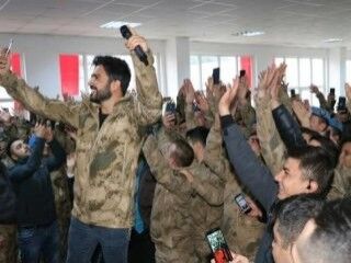 ASKERLERLE BİRLİKTE ŞARKI SÖYLEDİ