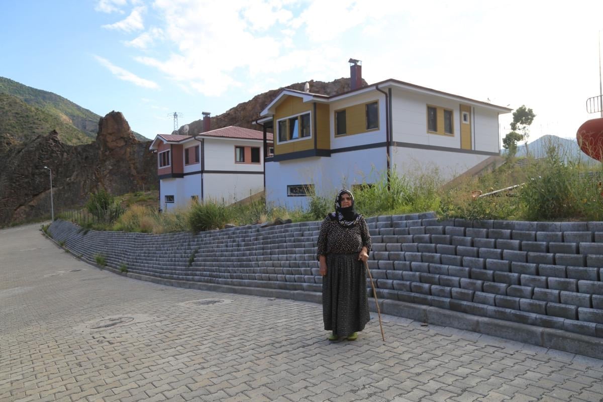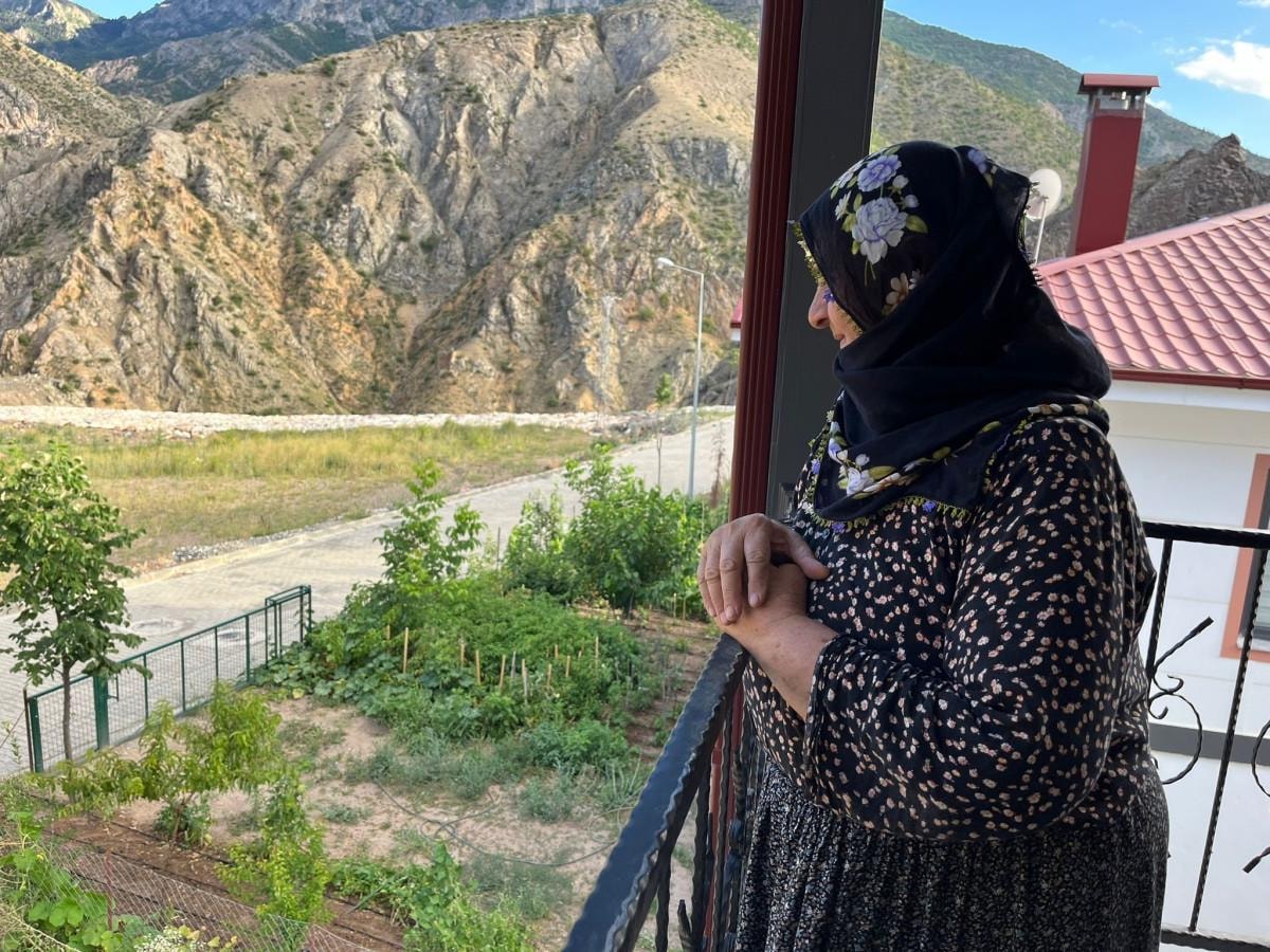 Bir yıl köyde yalnız kaldım. Sular geldi, evim sular altında kaldı. Allah razı olsun kaymakamdan, yeni köy evlerinden bir yer verdi. Komşularım iyi, ben rahatım. Herkes ilgilendi, yardımcı oldu. Beni oradan suyun içinden kurtardılar. Komşularım geldi, sarıldı. Onlar da mutlu oldu. Yalnızlıktan kurtardılar. Orada anılarım çok ama, mecbur taşınmak zorunda kaldık