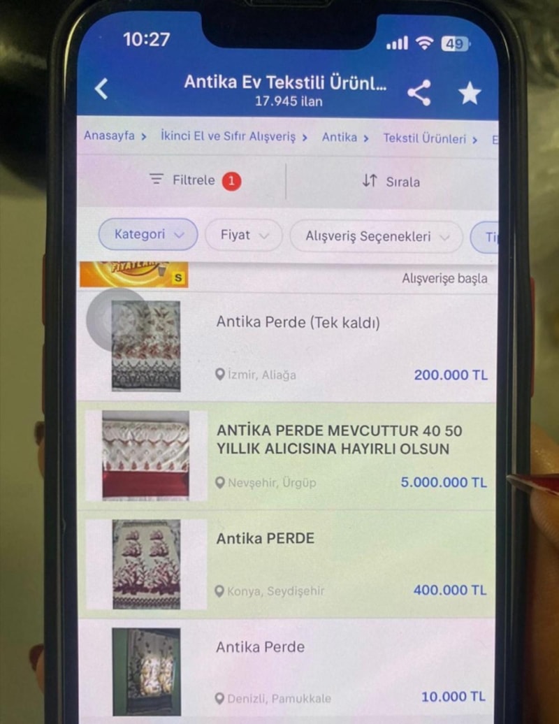Mehmet Koşucu da “Perdeler bu ara çok fazla gündemde yer alıyor ama bir kuyuya taş atıldı ve herkes arkasından atladı. Bu bir yalan çünkü bu ürünlerin antika değerleri yoktur. Bu perdeler yaklaşık 30-40 seneliktir. Antikacıların gözünde bu perdeler asla bir antika ürün değil. Bunlar 2. el pazarlarında herkesin görüp, alabileceği türden perdeler ve piyasada çok sayıda var. Gerçek antika dediğimiz perdeler el işi ve tek kırma işidir. Onların değerleri yüksek ama bu internette konuşulan perdelerin değerleri kesinlikle yüksek değil. İnsanlar bunlara inanmasınlar. Bana gelse asla bu ürünler satın alamam. Antikacılar da bunları paylaşmasınlar. İnsanlar bu rakamları gerçek zannediyor. Bu iş internet sitelerinde komediye döndü. Kendi sayfama asla koymam, insanları yanıltmasınlar. Bana özelden bu perdeler çok para ediyormuş yazanlar oluyor. O insanlara cevap vermiyorum bile, kahve fincanları da aynı şekilde antika olarak anılıyor. Takımı dahi 300-400 liradan satılıyor.” dedi.