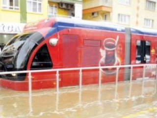 Antalya'nın tramvayı Antray, adeta suların üzerinde yüzdü..