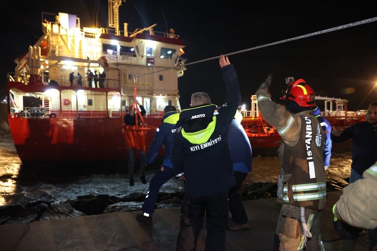 Ekiplerin çalışmasıyla karayla gemi arasında kurulan düzenekle mahsur kalan 11 kişilik mürettebat kurtarıldı.