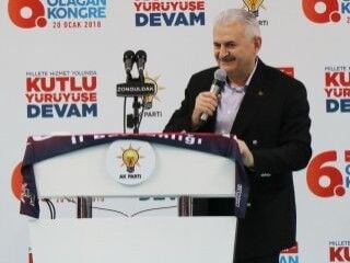 2019 yılındaki seçimleri hatırlatan Başbakan Binali Yıldırım, "Biz Zonguldaklıyız. Bizim sevdamız da kömürümüz kadar karadır. Kara elmas diyarının ak gönüllü insanları, değerli yol arkadaşlarım, AK kadınlar, AK gençler hepinizi muhabbetle selamlıyorum. Bugün sizlerle birlikte olmaktan büyük bir bahtiyarlık duyuyorum. Kongremiz hayırlı uğurlu olsun. Buradan Zonguldak’ın her bir köşesini, Tam 170 senedir maden bölgesi olan Zonguldak’ta ve o ocaklarda hayatını yitiren kardeşlerimi rahmetle anıyorum. Emeğin şehri, alın teri Zonguldak’tan madende çalışan yüzleri kömür karası ama alınları ak olan bütün kardeşlerimi sevgiyle selamlıyorum. Her gittiğimiz yerde teşkilatlarımız vatandaşlarımız büyük bir coşkuyla büyük bir heyecanla muhabbetle bizi karşılıyor. Bağrına basıyor. Recep Tayyip Erdoğan’a yüzde 53 destek verdiniz Cumhurbaşkanı seçtiniz. İnşallah 2019 seçimlerinde daha güzel bir gelecek için yeni bir tarih yazmaya hazır mıyız? 15 yıl gibi kısa bir sürede Türkiyemizi başkalarının hayal dahi edemeyeceği bir noktaya taşıdık. Şimdi soruyorum bugün dünyada büyüme rekorları kıran ülke hangi ülke? Kendi savaş uçağını, uydusunu yapan ülke hangi ülke? Savunmada yerli üretimin yüzde 65’e çıkartan ülke hangi ülke? İhracat rekorları kıran ülke hangisi? Dünyada en büyük projeleri gerçekleştiren ülke hangi ülke? Esnafın, işçinin, vatandaşın hakkını gözeten kollayan ülke hangisi? Engellisine, gencine, yaşlısına bütün vatandaşlarına sahip çıkan ülkenin adı ne? İlleri kalkındıran ülke hangi ülke? Yetmez, daha fazlasını yapacağız." ifadelerini kaydetti.