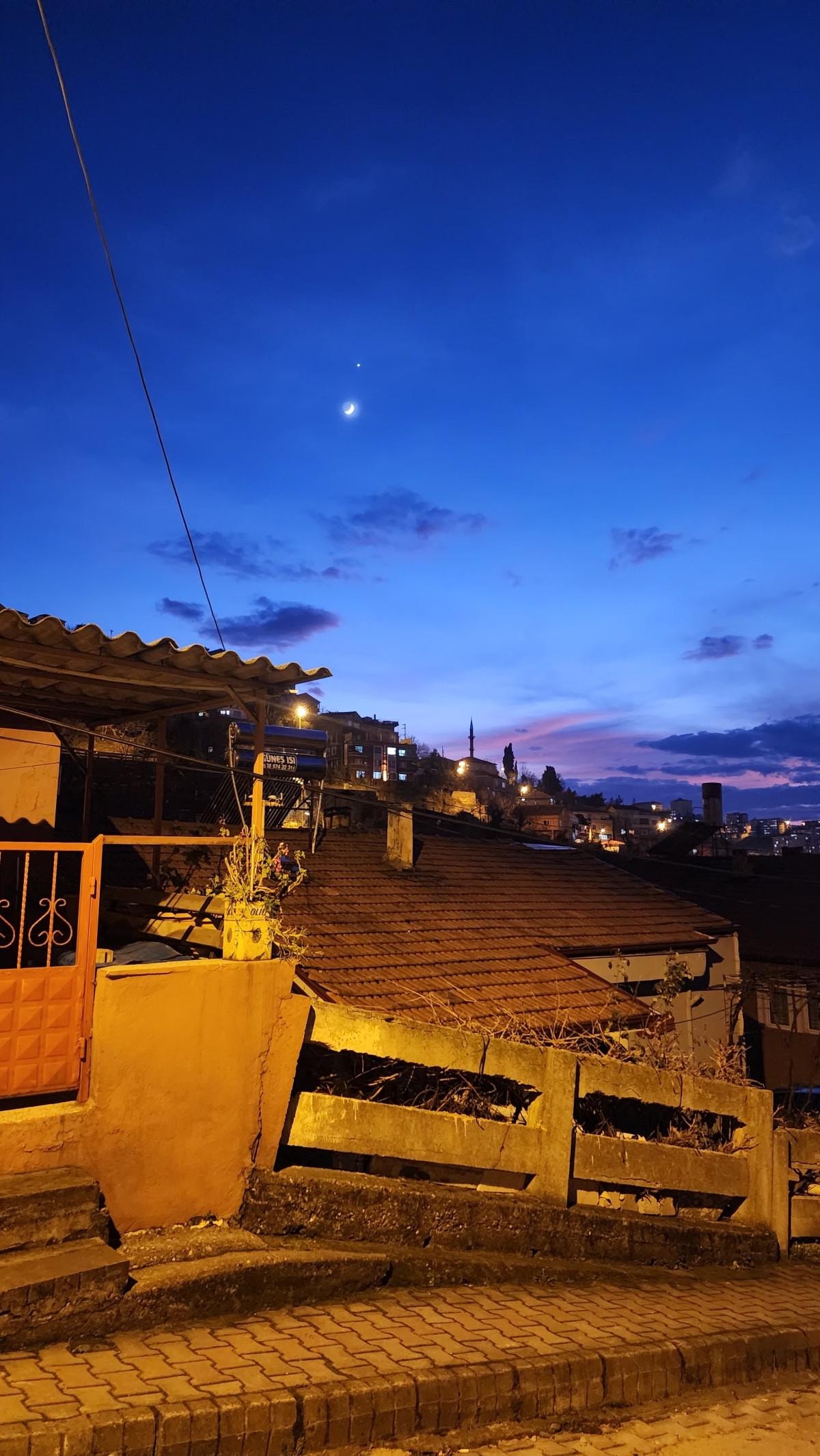 Zonguldak semalarında hilal şeklindeki Ay ile Venüs gezegeni aynı anda gözlemlendi.