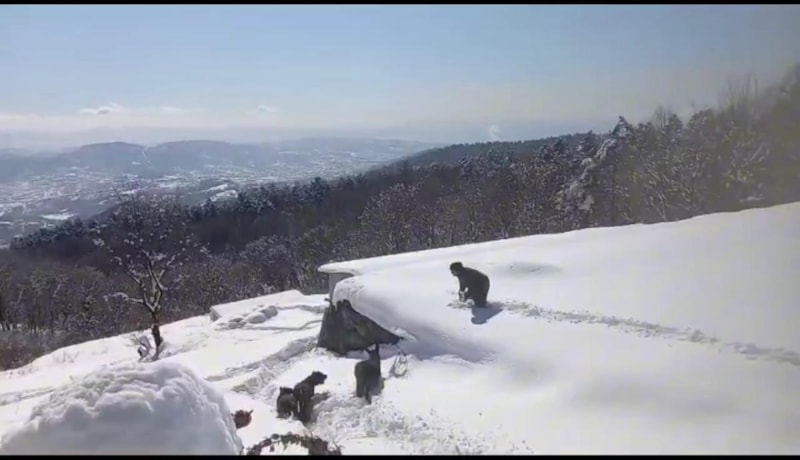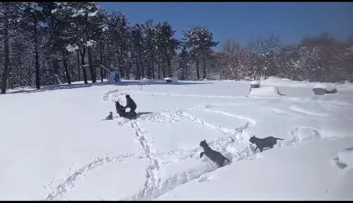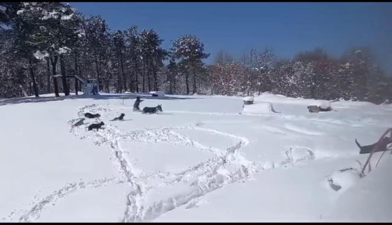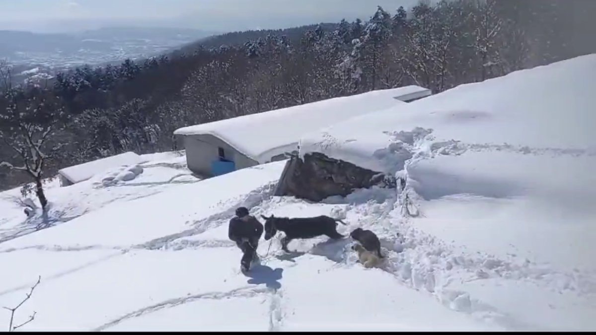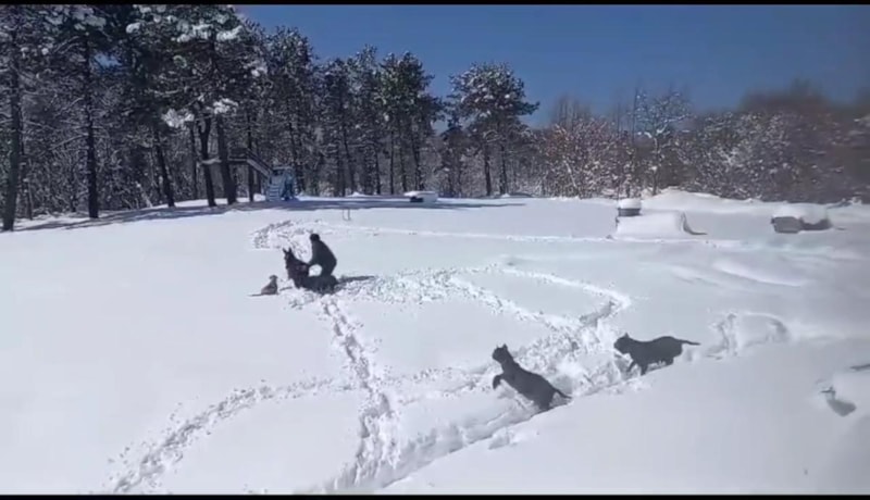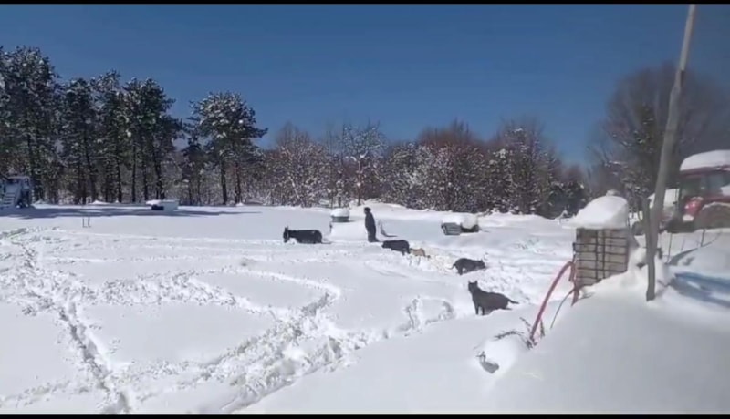 Zonguldak’ın Ereğli ilçesinde, beyaz karla örtülü Radar mevkisindeki bir hayvan çiftliğinde, Bülent Taşdibek, ‘Abbas’ adlı sıpası ve köpekleriyle karın tadını çıkardı.
