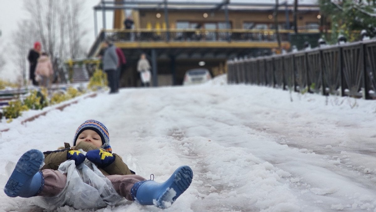 Çocuklar karın tadını poşetle kayarak çıkardı.
