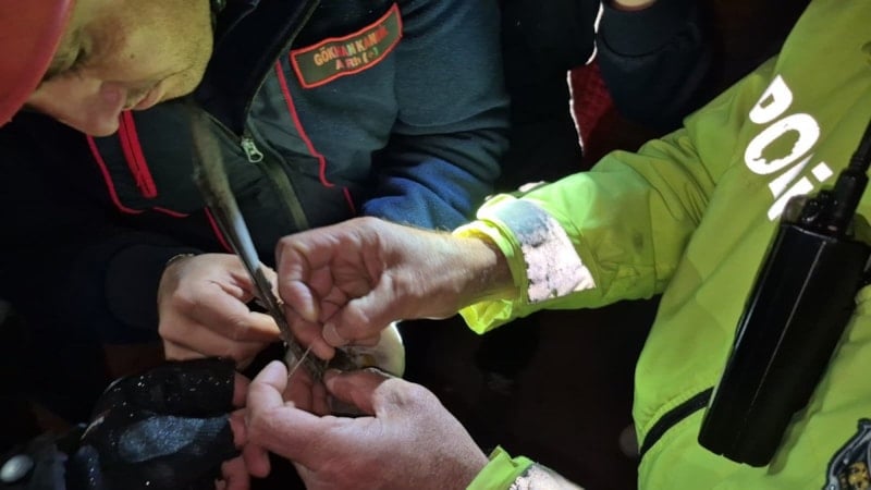 Ekiplerin titiz müdahalesiyle yaklaşık 15 dakika süren çalışma sonucunda ebabil kuşunun ayağı ve boynuna dolanan ip dikkatlice kesildi. Kuş daha sonra kontrol edilmek üzere itfaiye istasyonuna götürüldü.