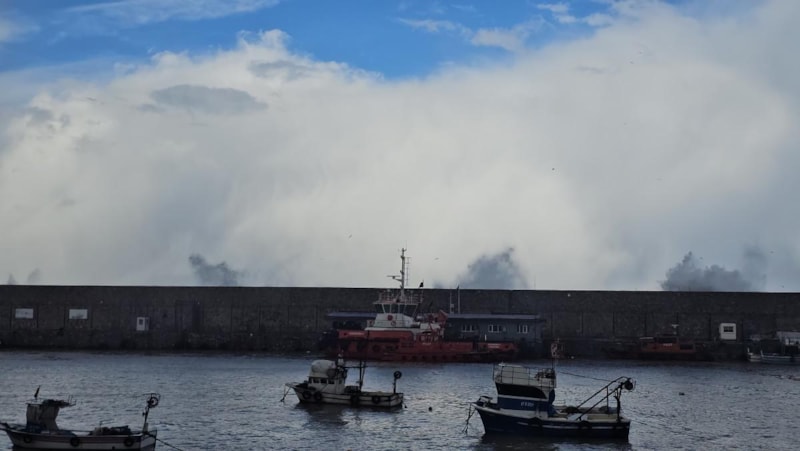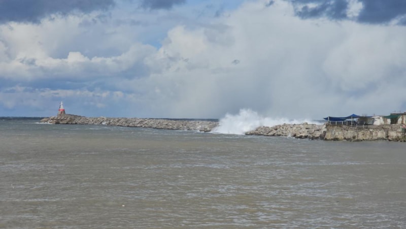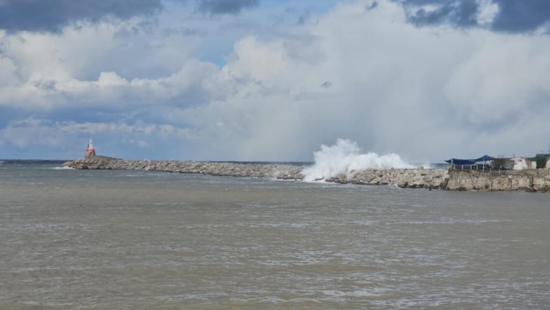 Yağmur yağışı ve rüzgar etkili olurken, boyu 8 metreyi aşan dalgalar oluştu. Dalgalar zaman zaman mendireği aşarak liman içine ulaştı.