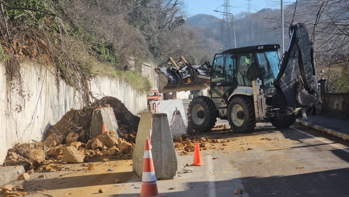 Belediye ve Karayolları ekipleri, heyelan çevresinde önlem alarak caddeyi 3 ayrı noktadan trafiğe kapattı.