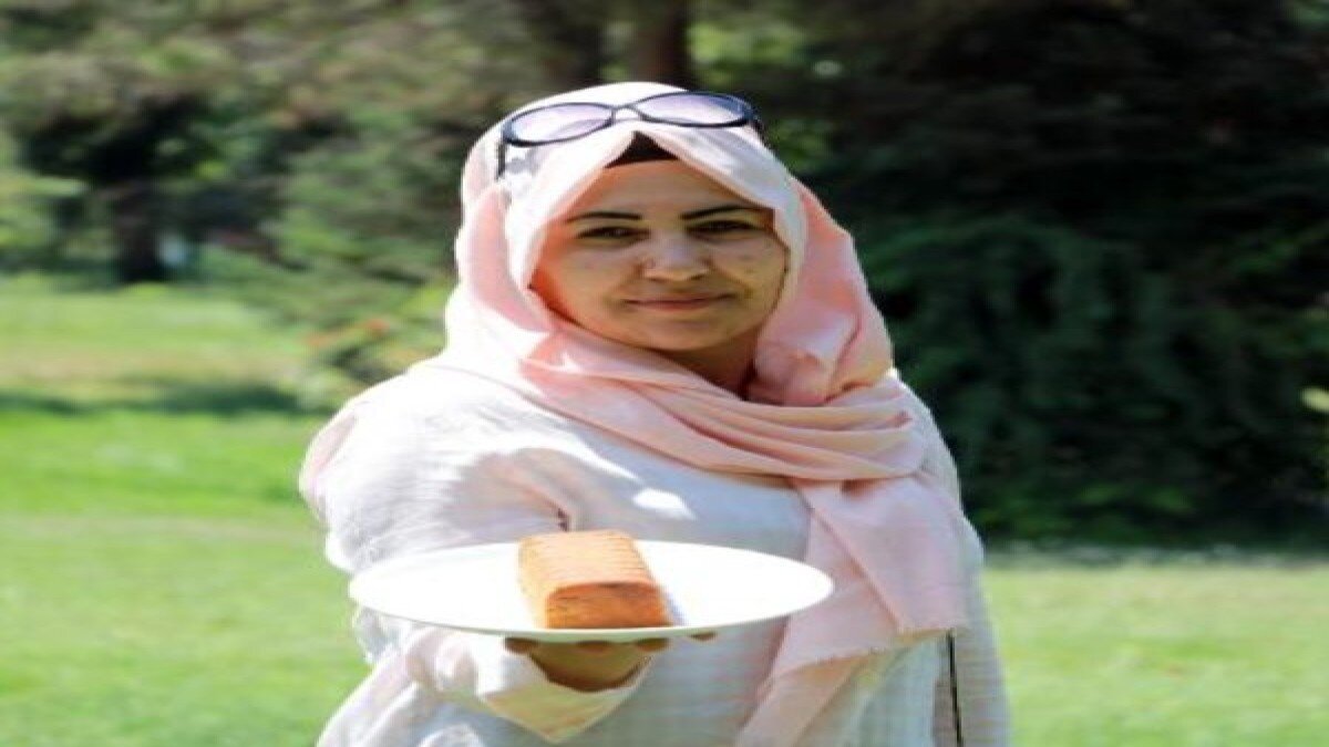 Evde yaptığı keki çalıştığı tekstil atölyesine götüren Akkoç, çay molasına 5 dakika kala mesai arkadaşlarına kek ikram etti.